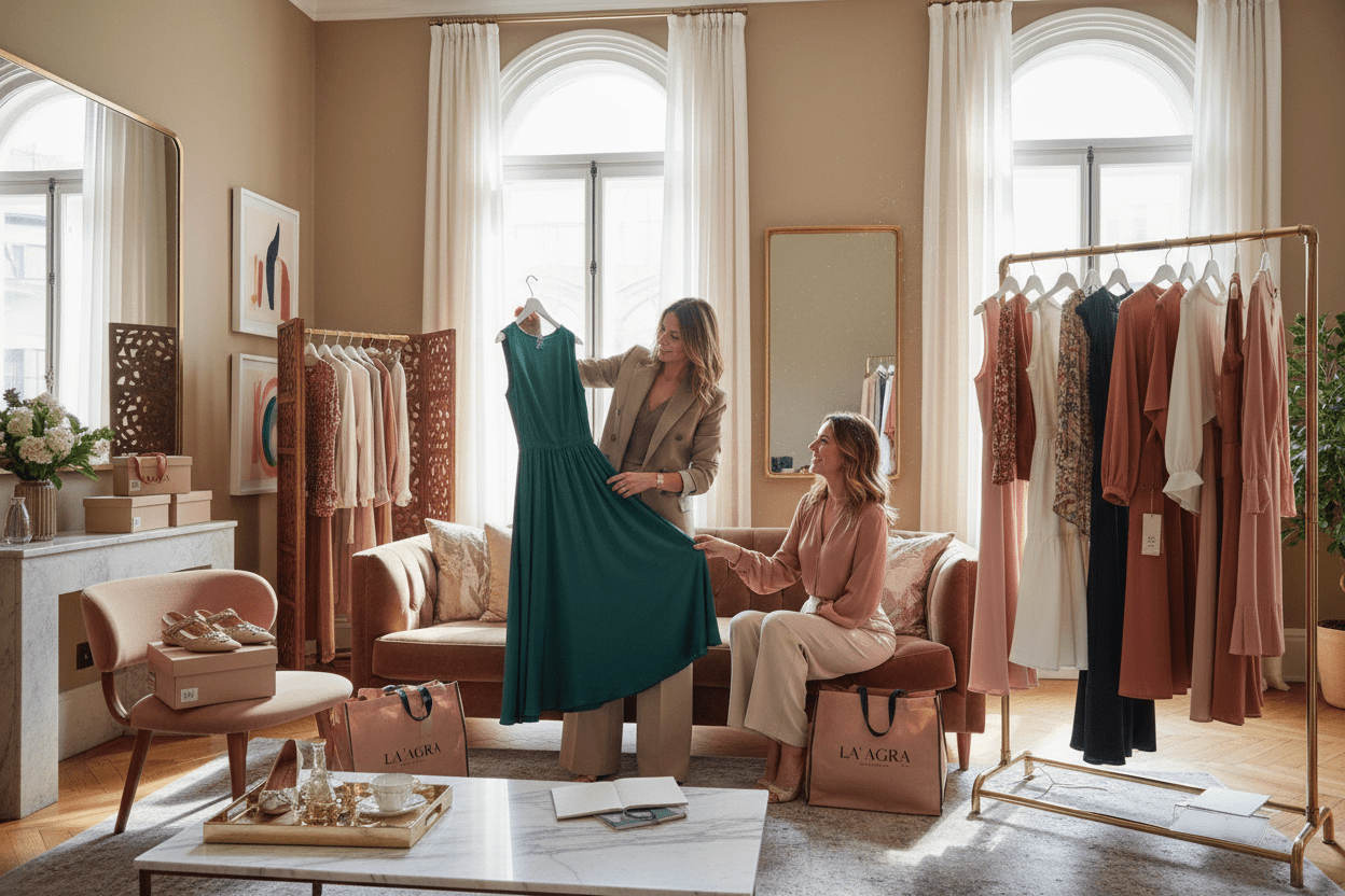 Enjoy a personalized styling experience where we bring a curated selection of pieces tailored to your interests directly to your home—or meet us in our studio for a private try-on session. Sip champagne (or your beverage of choice) while you explore your favorite looks in comfort.